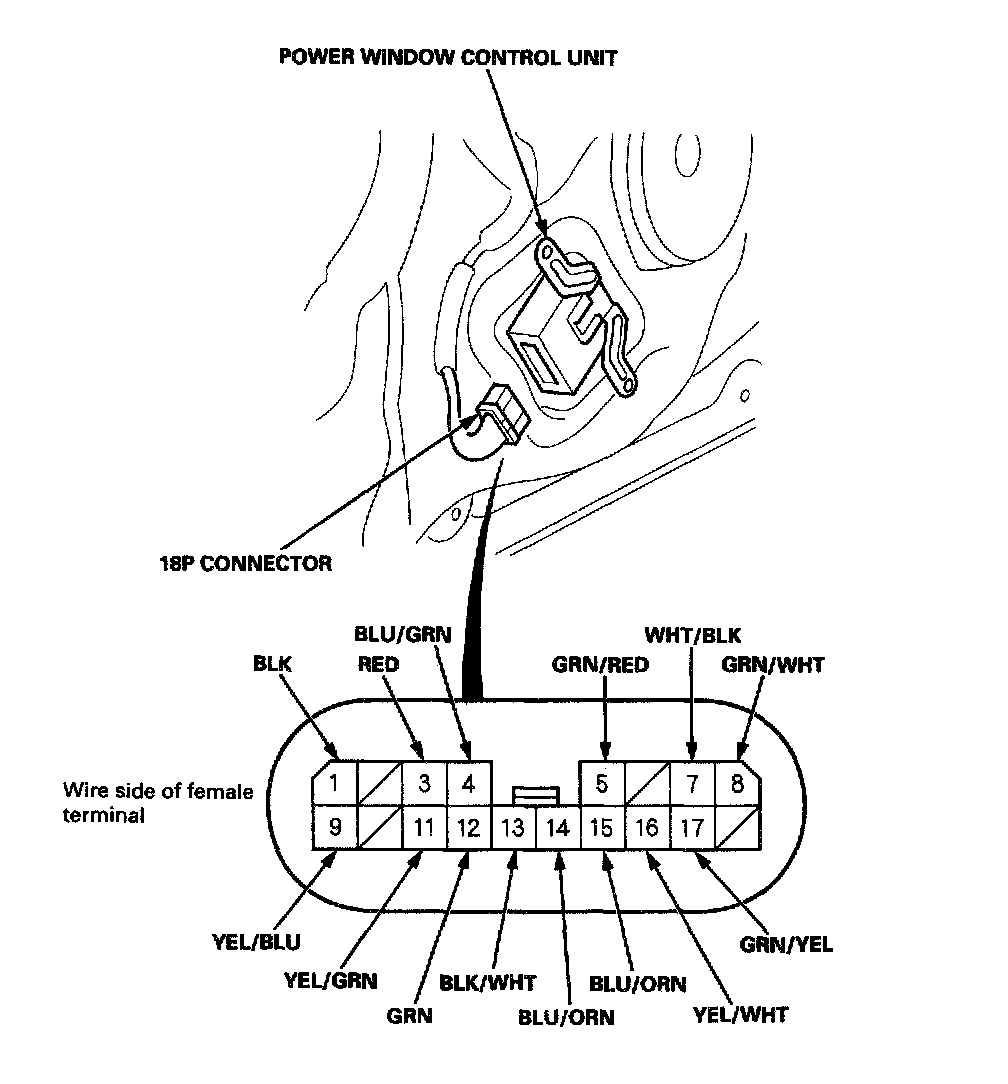 Control Unit Input Test1. Remove the driver's door panel, and disconnect the 18P connector from the control unit.