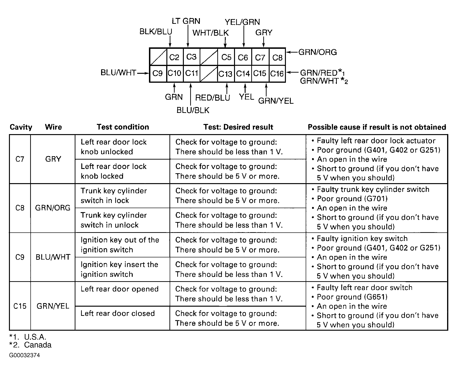 Fig 1: Driver's Multiplex Control Unit Anti-Theft System Input Test (1 Of 2)