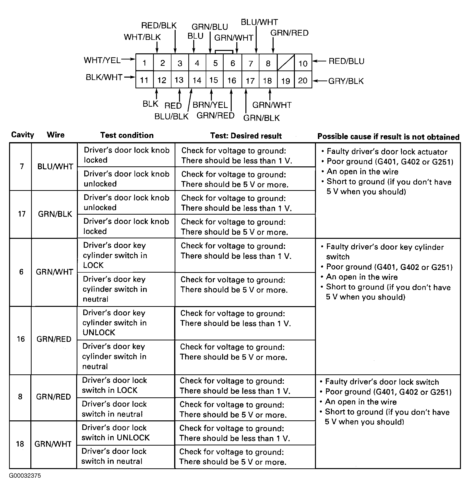 Fig 1: Door Multiplex Control Unit Keyless Entry System Input Tests (1 Of 2)