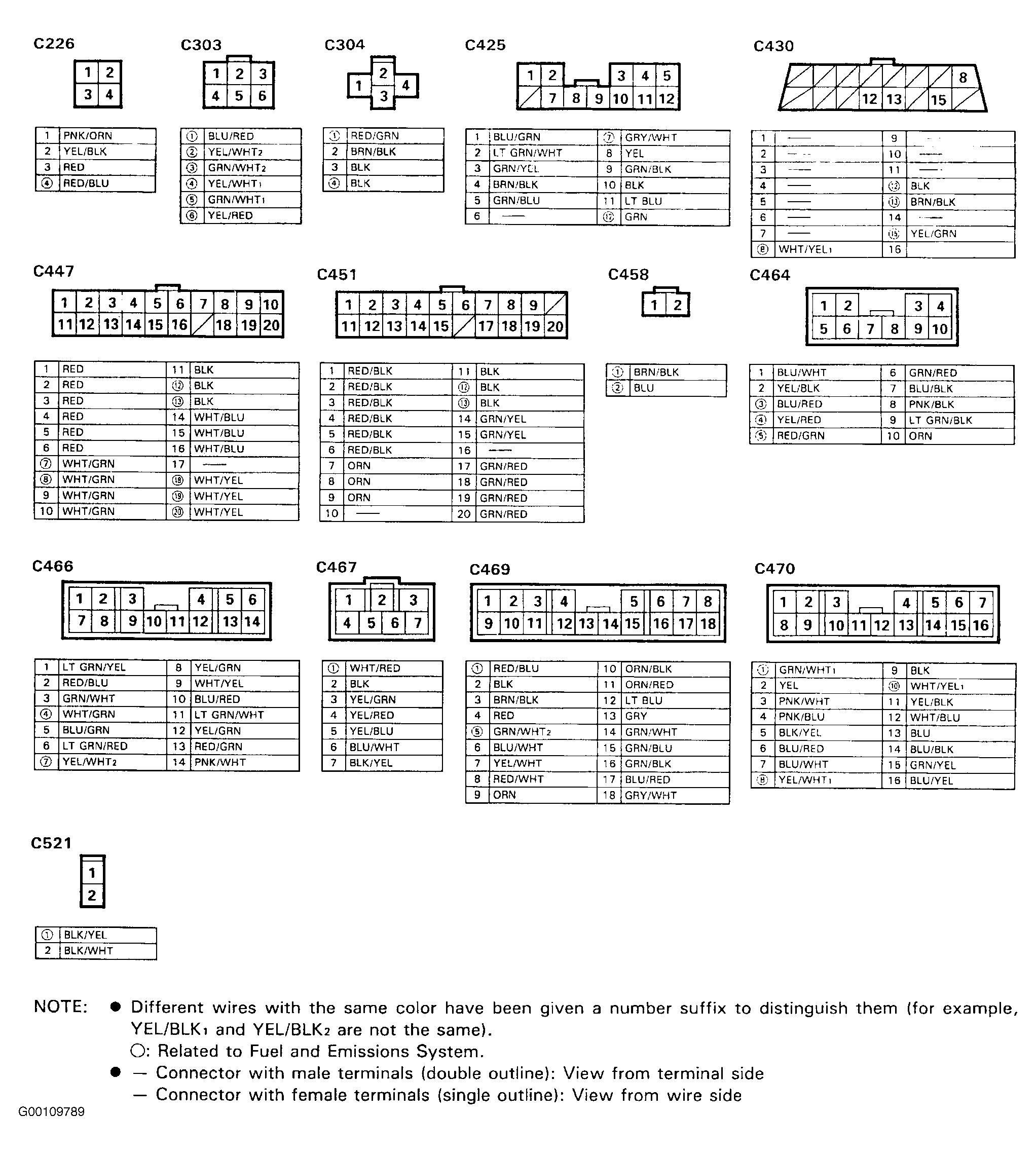 Perform all resistance and voltage tests with a Digital Volt-Ohmmeter (DVOM) with minimum 10-megohm impedance, unless stated otherwise in test procedures. If the inspection for a particular failure code requires the test harness, remove the seat back panels. Unbolt the ECM bracket to backprobe ECM connectors. Check the system according to the procedure described for the appropriate code. For backprobe procedure, see Figure