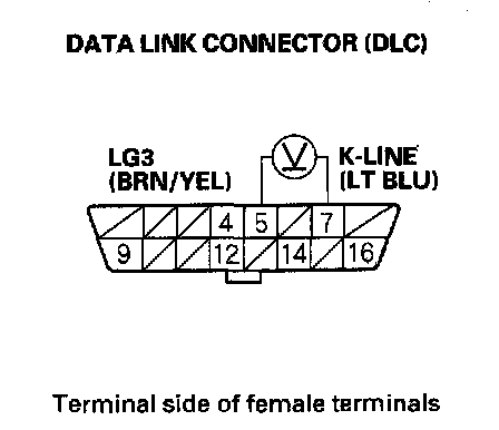 13. Measure voltage between DLC terminals No.5 and No.7.