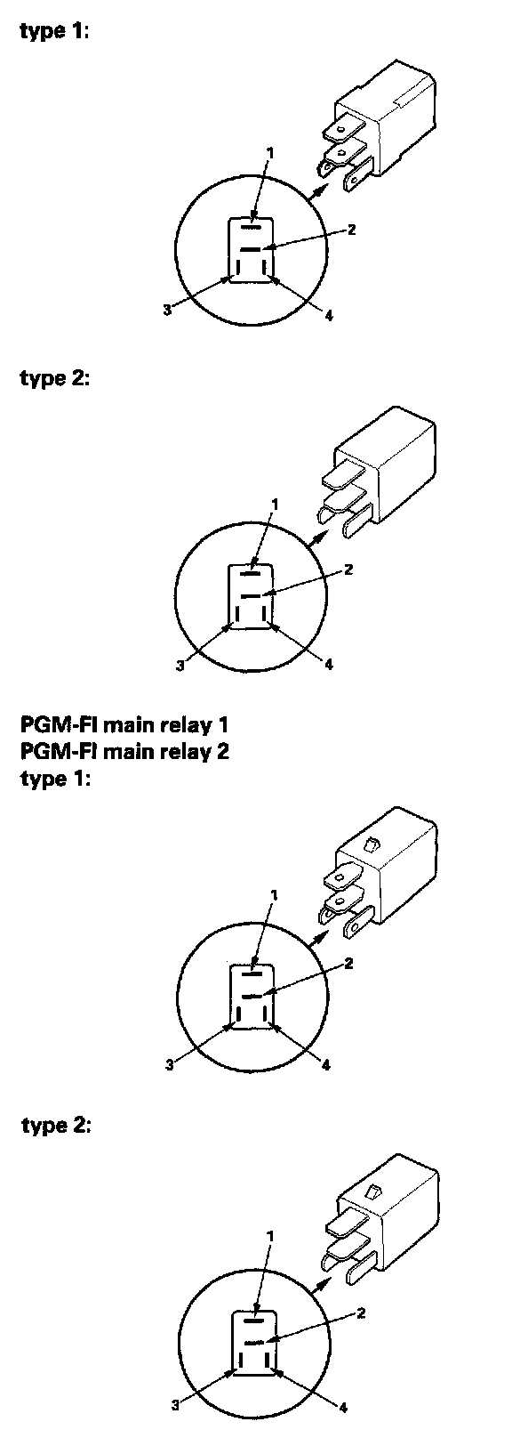 - There should be continuity between the No.1 and No.3 terminals when power and ground are connected to the No.2 and No.4 terminals.