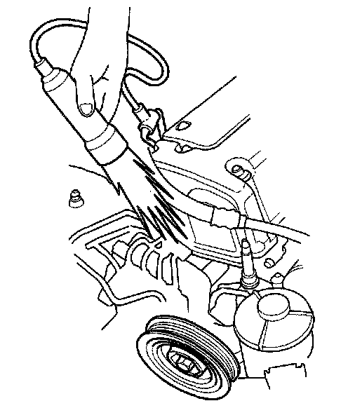1. Start the engine. Hold the engine at 3,000 rpm with no load (in Park or Neutral) until the radiator fan comes on, then let it idle.