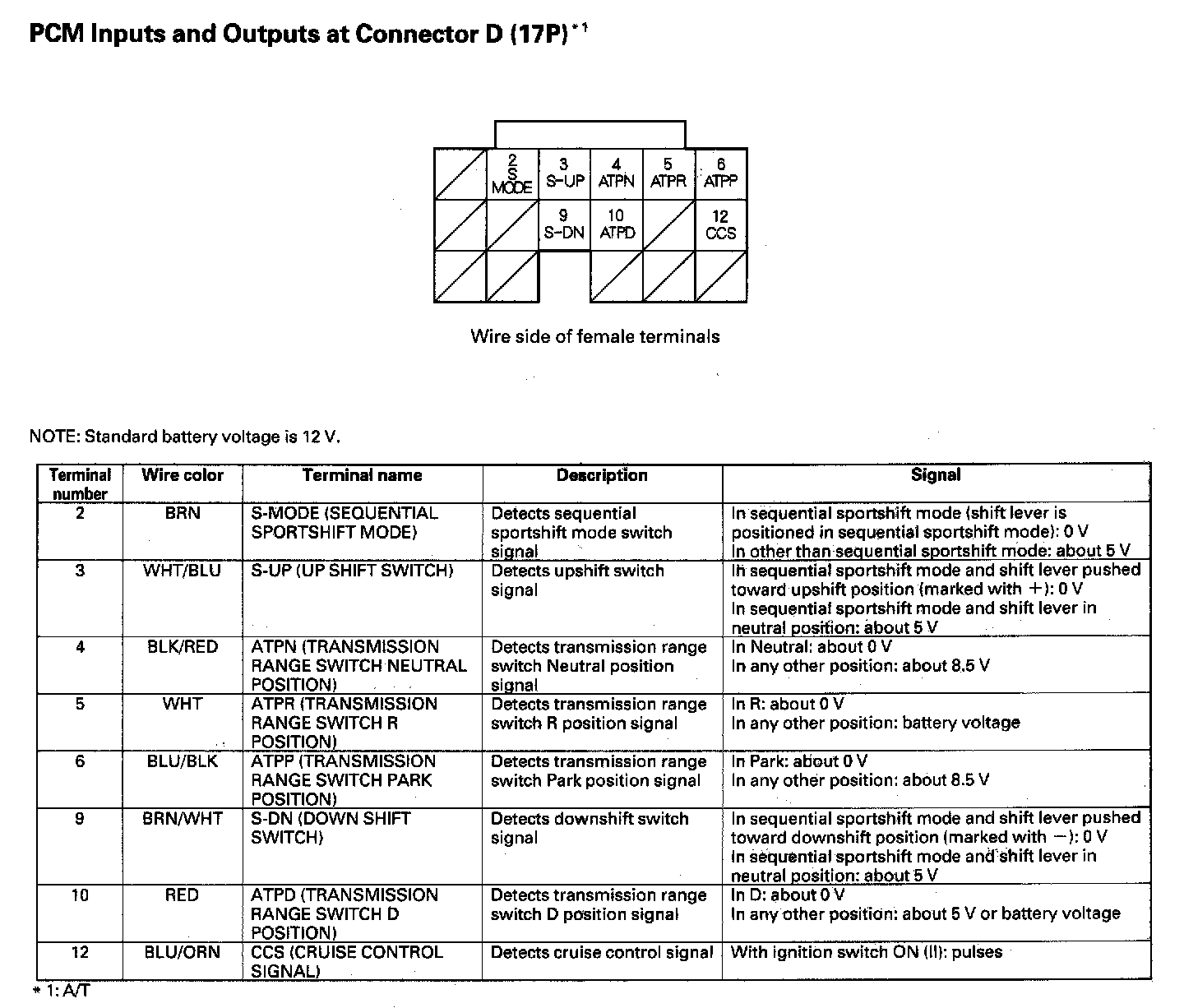 ECM/PCM Inputs And Outputs At Connector D (17P):