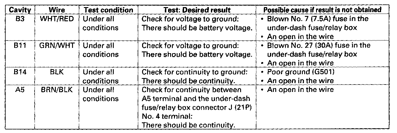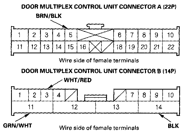 4. With the door multiplex control unit still disconnected, make these input tests at the connector.