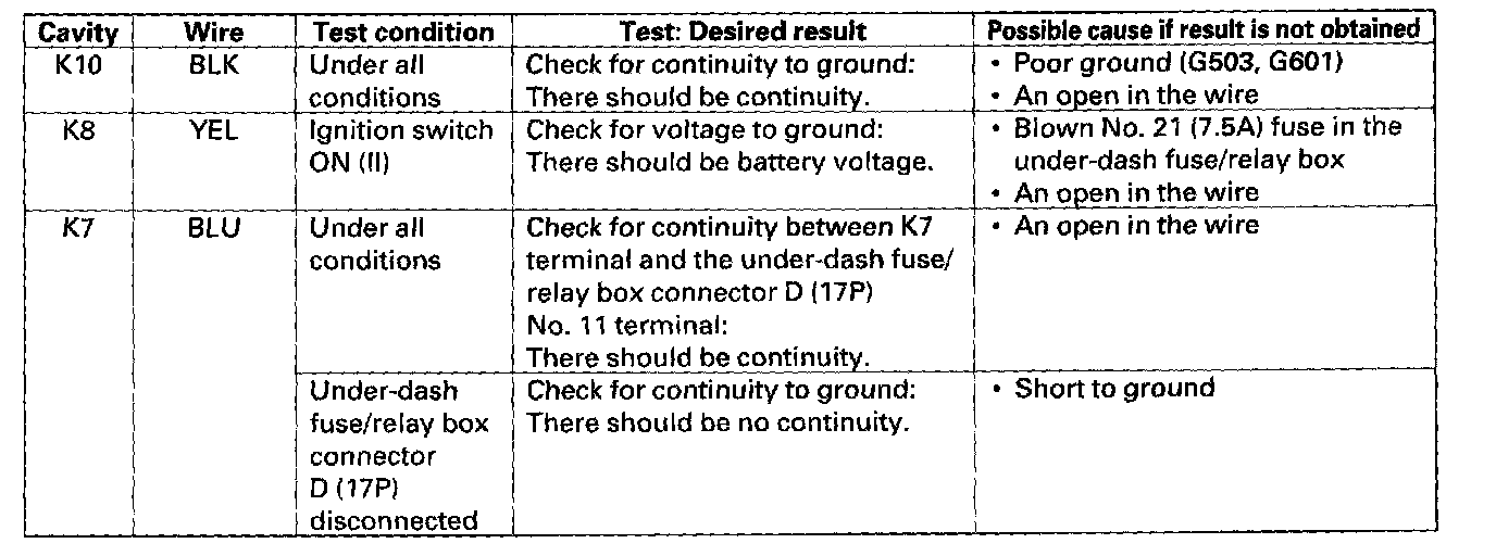 2. Disconnect the under-hood fuse/relay box connector K (10P).