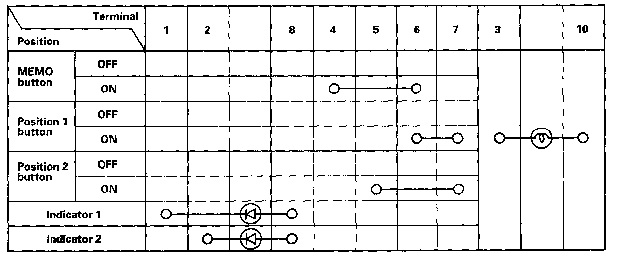 3. Check for continuity between the terminals in each switch position according to the table.