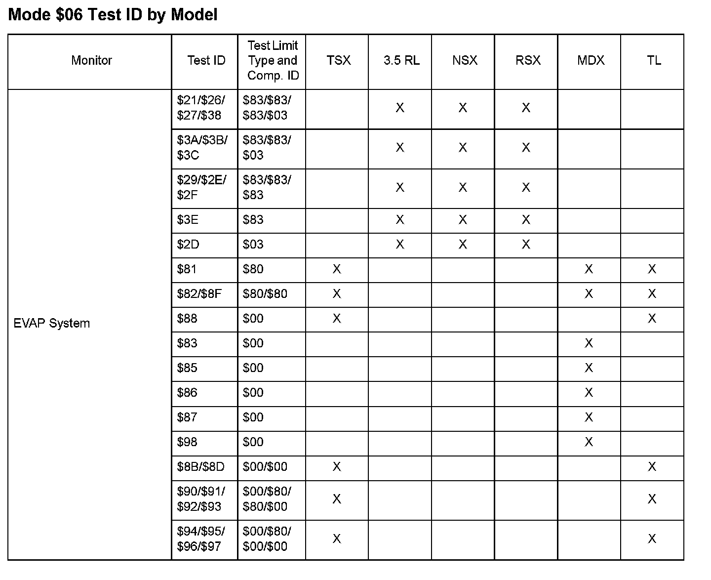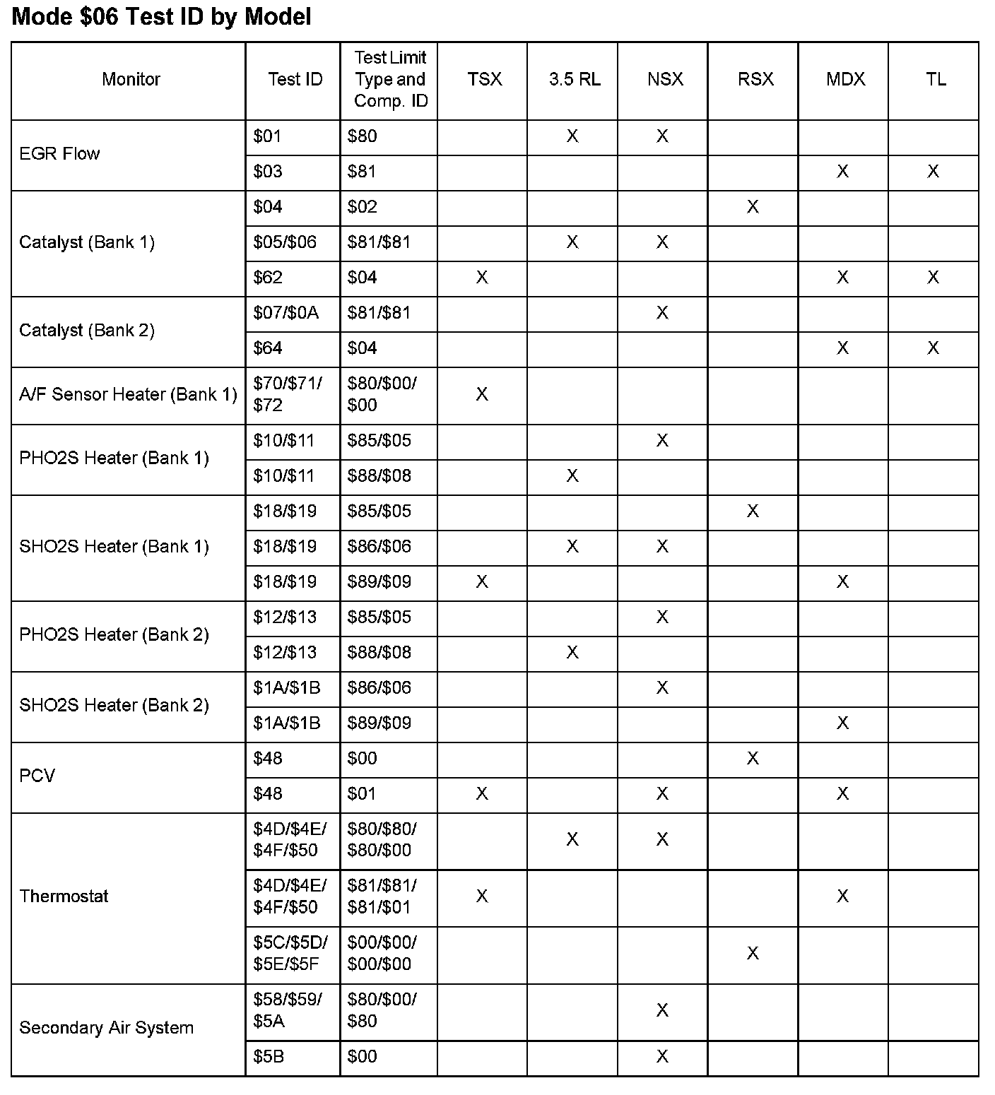 Home >> Acura >> 2004 >> TL V6-3.2L >> Repair and Diagnosis >> Powertrain Management >> Computers and Control Systems >> Testing and Inspection >> Mode 6 Data