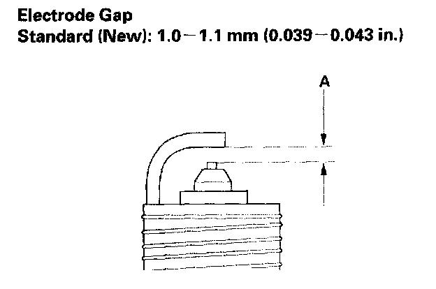 2. Do not adjust the gap (A) of iridium tip plugs ; replace the spark plug if the gap is out of specification.