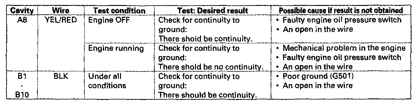 6. Reconnect the connectors. Turn the ignition switch ON (II) and make these input tests at the connector,