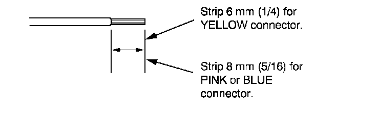 7. If you are using a yellow splice connector, strip about 6 mm (1/4 inch) of insulation off the ends of both wires. If you are using a pink or blue splice connector, strip off about 8 mm (5/16 inch) of insulation.