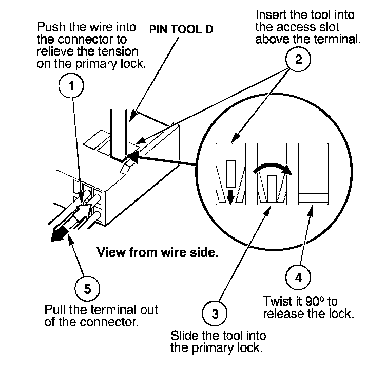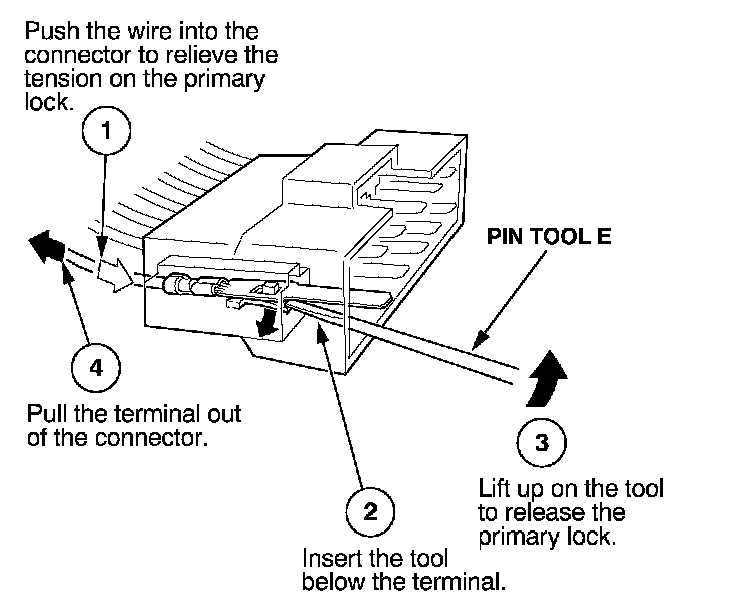 Before you begin, inspect the wire you are about to repair for damage and length. Make sure the wire will be long enough to make a terminal repair without stretching it when you reinstall the terminal in the connector. If the wire is too short, or if access to the connector is too restricted to make a terminal repair, you may need to install a pigtail terminal (a short length of wire with a factory-crimped terminal on it). Refer to HOW TO INSTALL PIGTAIL TERMINALS.