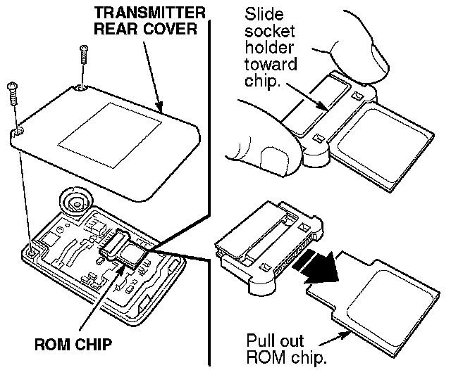 2. Remove the ROM chip from the old transmitter by sliding its socket holder toward the ROM chip.