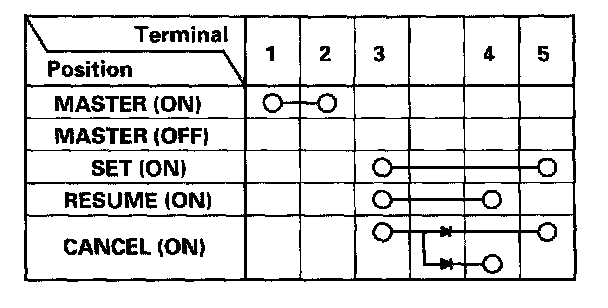 - If there is continuity, and it matches the table, but switch failure occurred on the cruise control unit input test, check and repair the wire harness on the switch circuit.