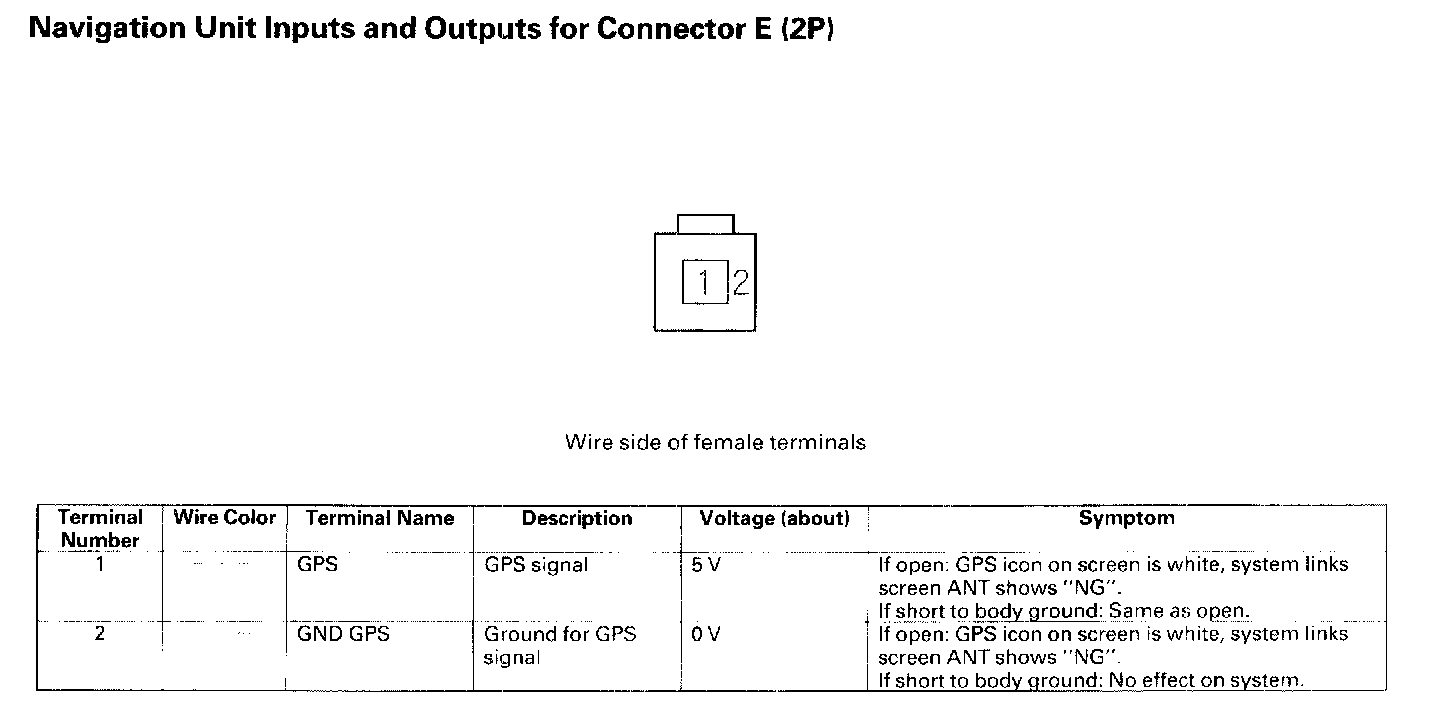 Navigation Unit Inputs And Outputs For Connector E (2P):
