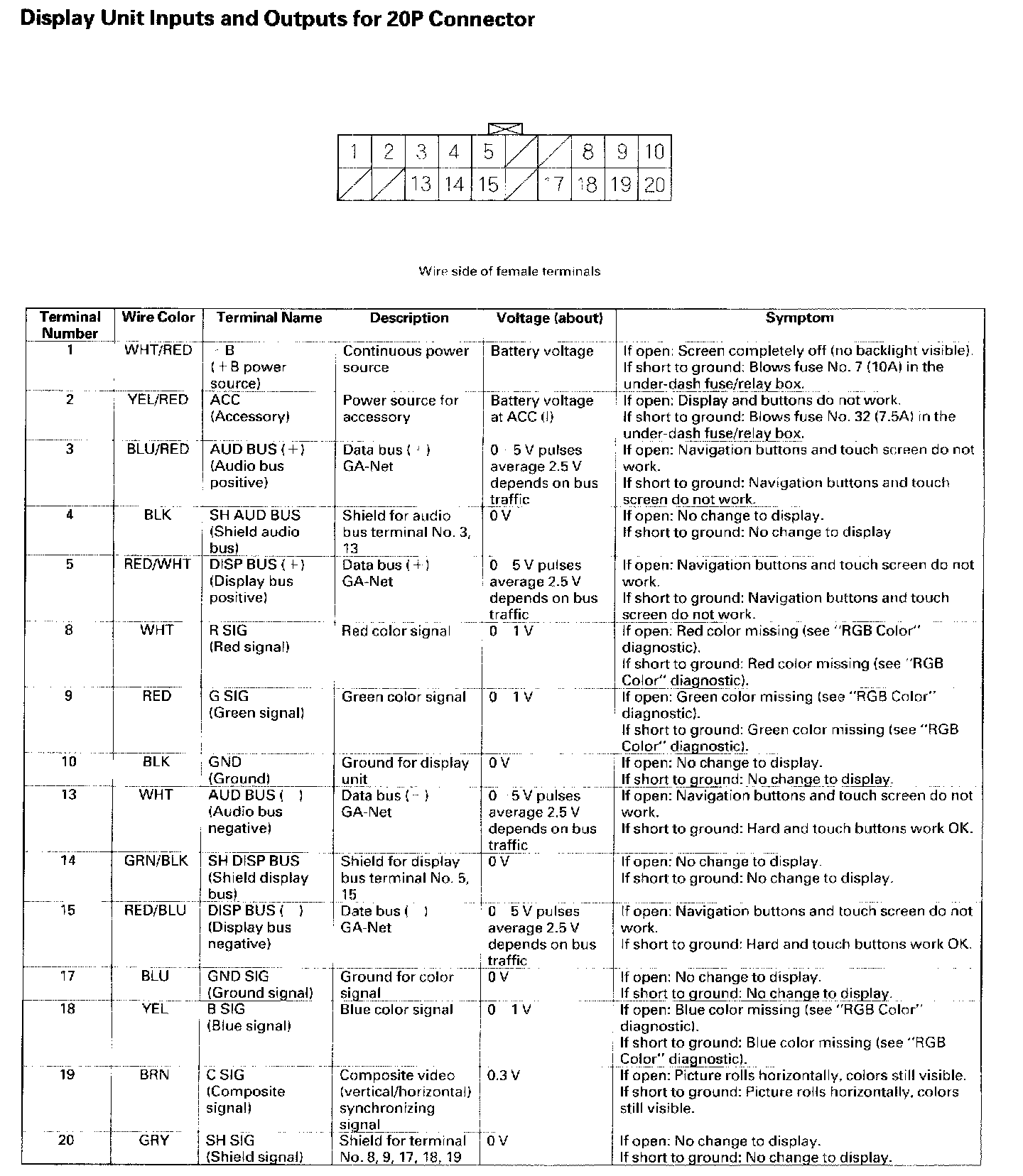 Navigation Unit Inputs And Outputs For Connector A (20P):