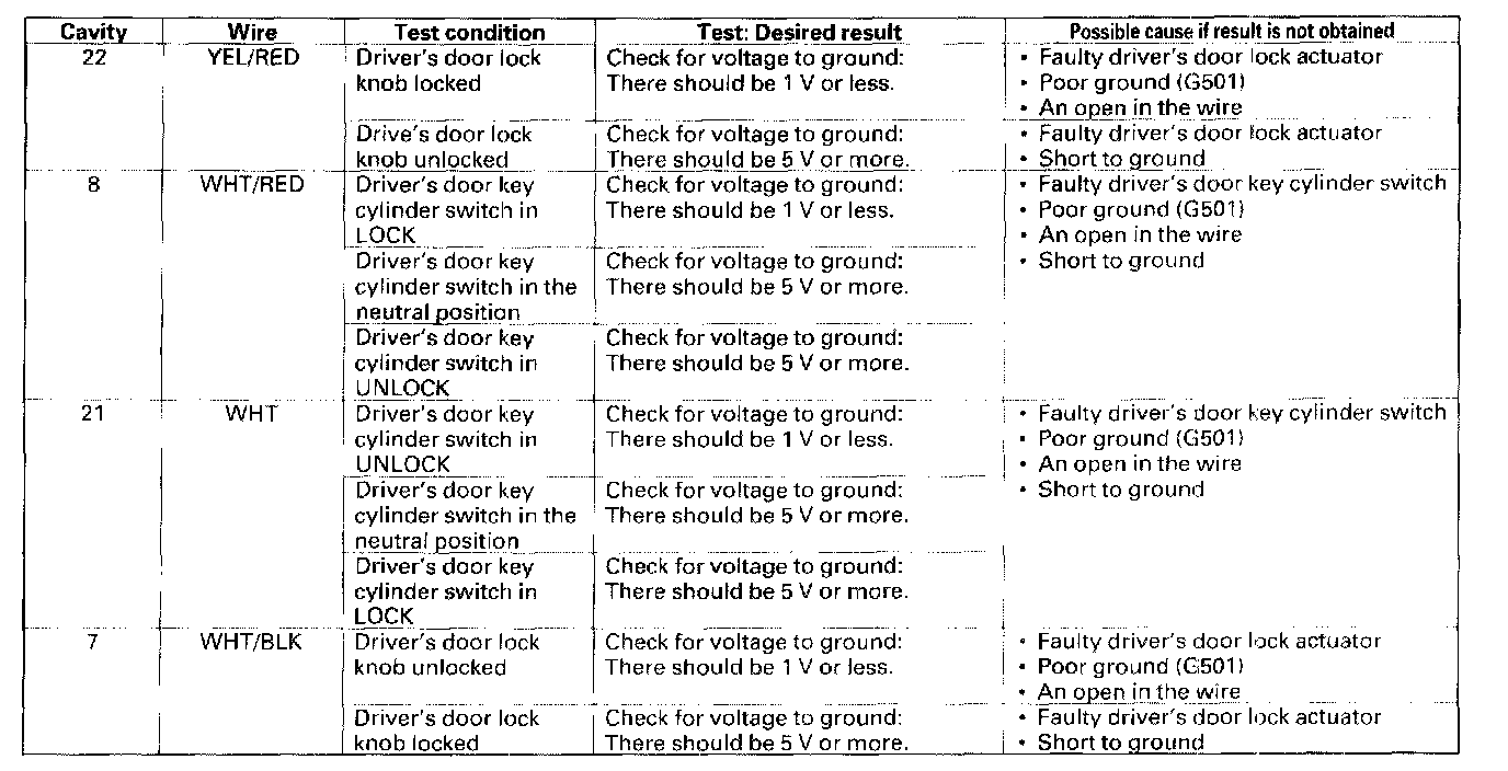10. Reconnect the connector to the door multiplex control unit and make these input tests at the appropriate connector