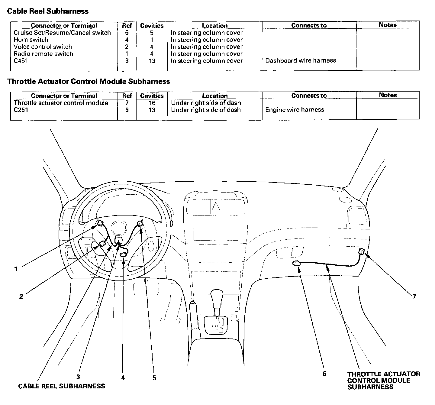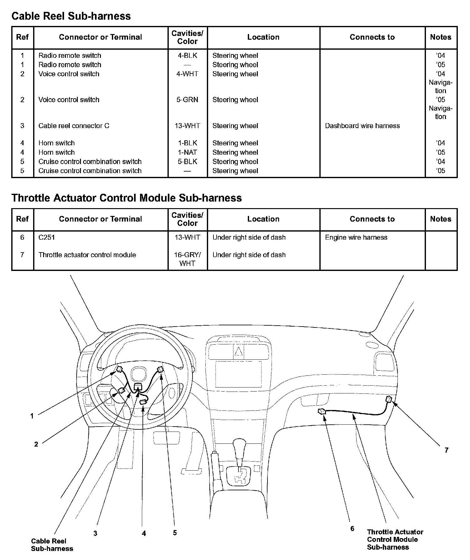 Cable Reel Sub-harness/Throttle Actuator Control Module Sub-harness: