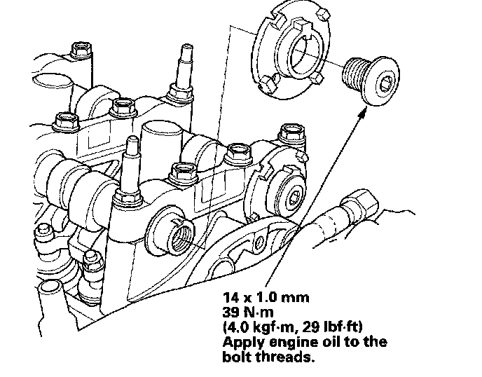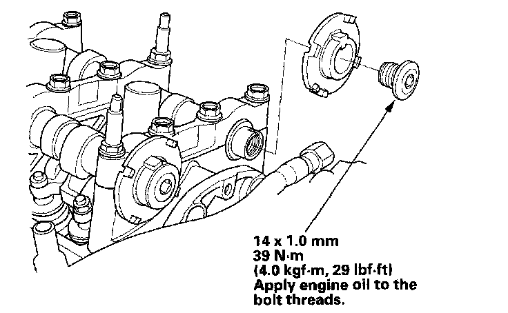 2. Hold the camshaft with an open-end wrench, then loosen the bolt.