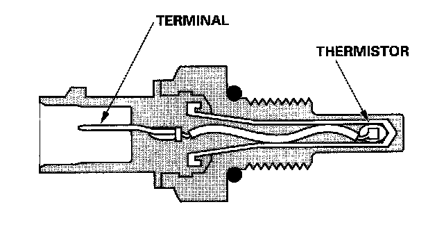 The ECT sensor is a temperature dependent resistor (thermistor). The resistance of the thermistor decreases as the engine coolant temperature increases.