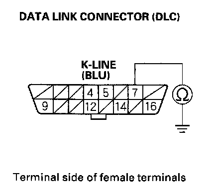 9. Check for continuity between DLC terminal No.7 and body ground.