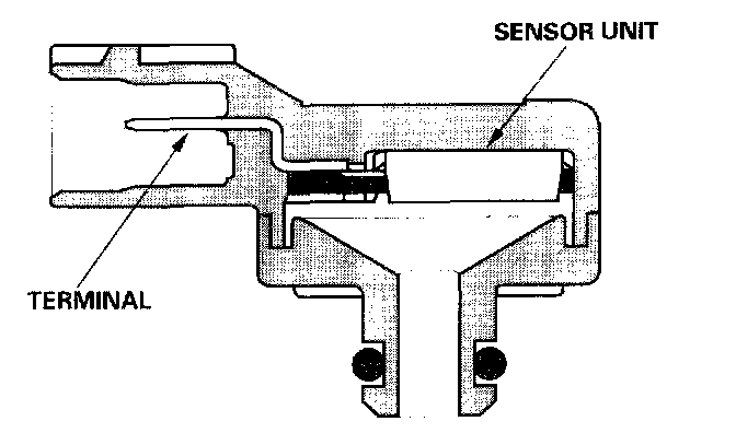 The ECT sensor is a temperature dependent resistor (thermistor). The resistance of the thermistor decreases as the engine coolant temperature increases.