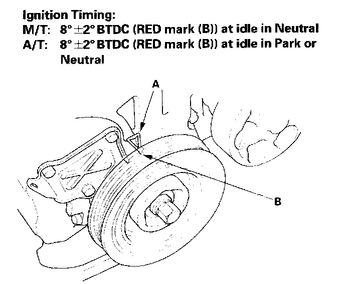 Ignition Timing Inspection1. Connect the Honda Diagnostic System (HDS) to the data link connector (DLC), and check for DTC's. If a DTC is present, diagnose and repair the cause before inspecting the ignition timing.