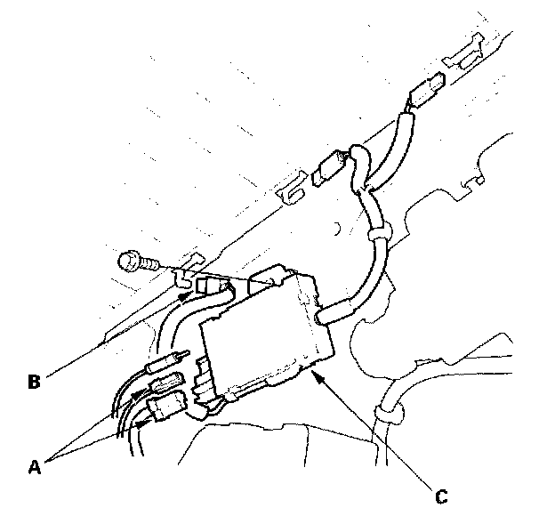 2. Disconnect the 1 P connectors (A) the antenna cable (B), from the window antenna coil (C).