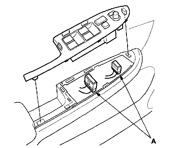 2. Disconnect the power mirror and power window switch connectors (A).