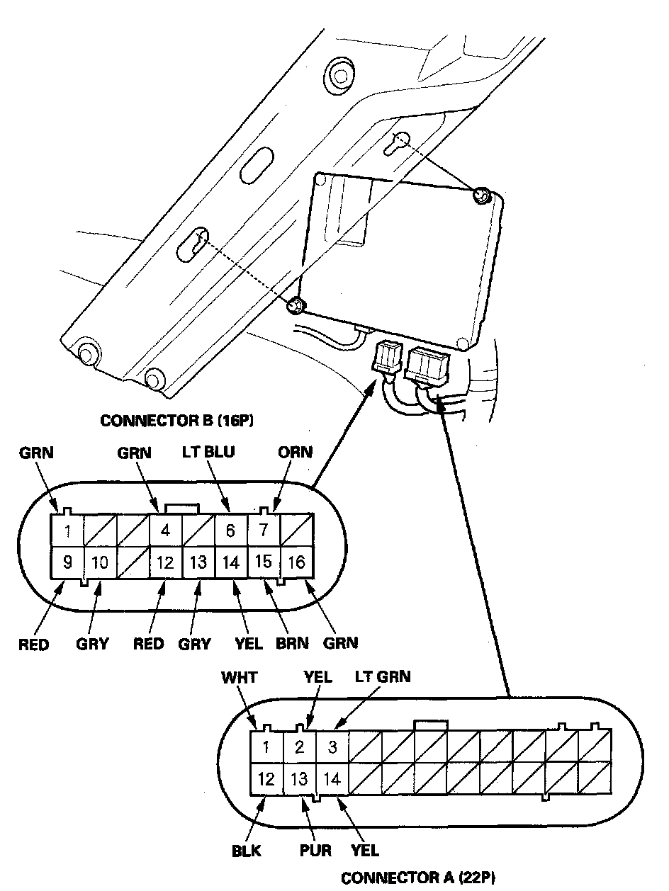 2. Disconnect the 22P and 16P connectors from the OnStar control unit.