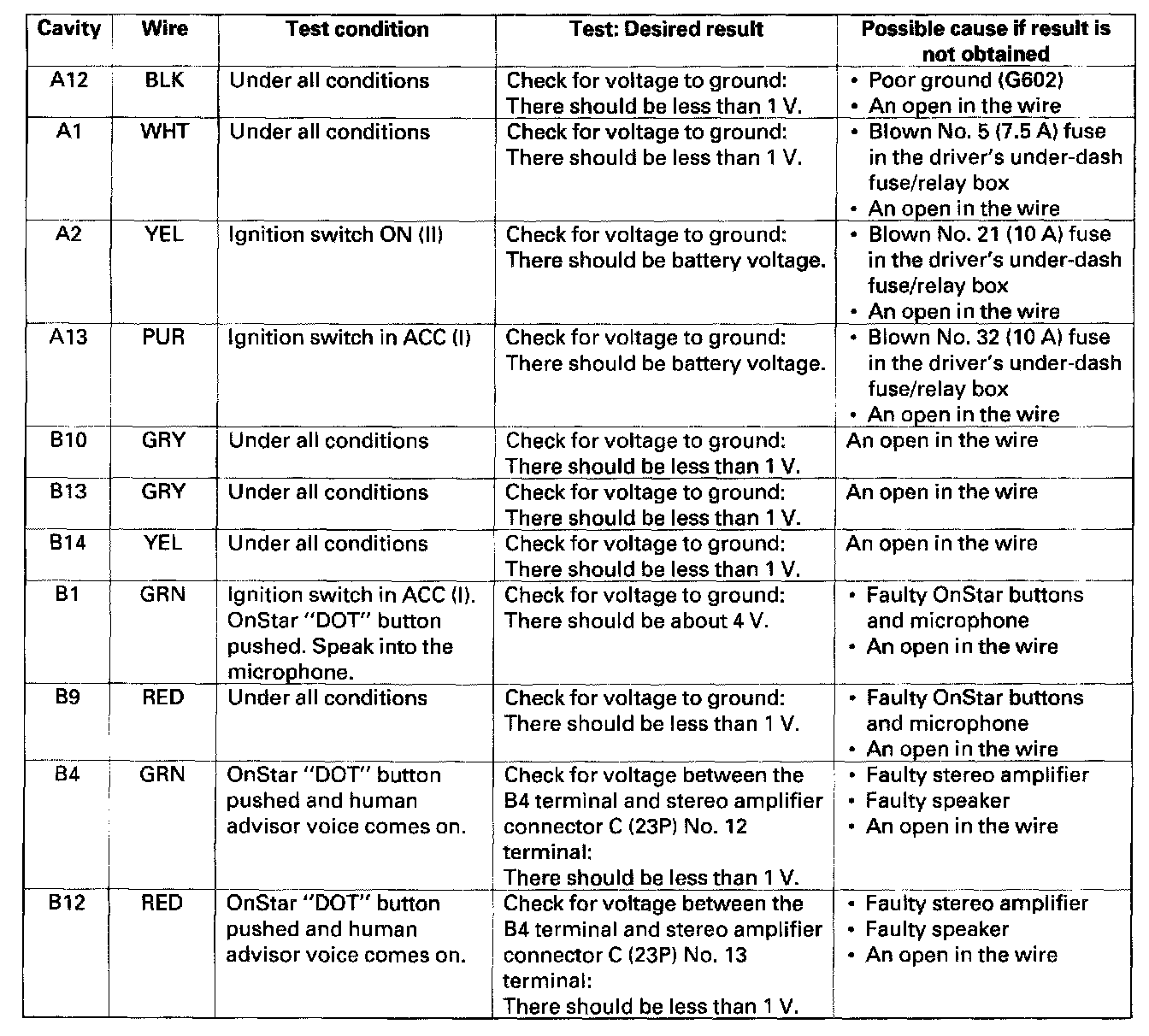 OnStar System Control Unit Input Test