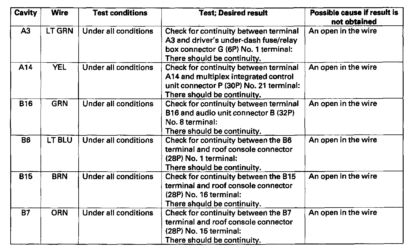 Home >> Acura >> 2005 >> RL V6-3.5L >> Repair and Diagnosis >> Accessories and Optional Equipment >> Cellular Phone >> Testing and Inspection >> Component Tests and General Diagnostics >> Component Tests - OnStar System >> Onstar System Control Unit Input Test