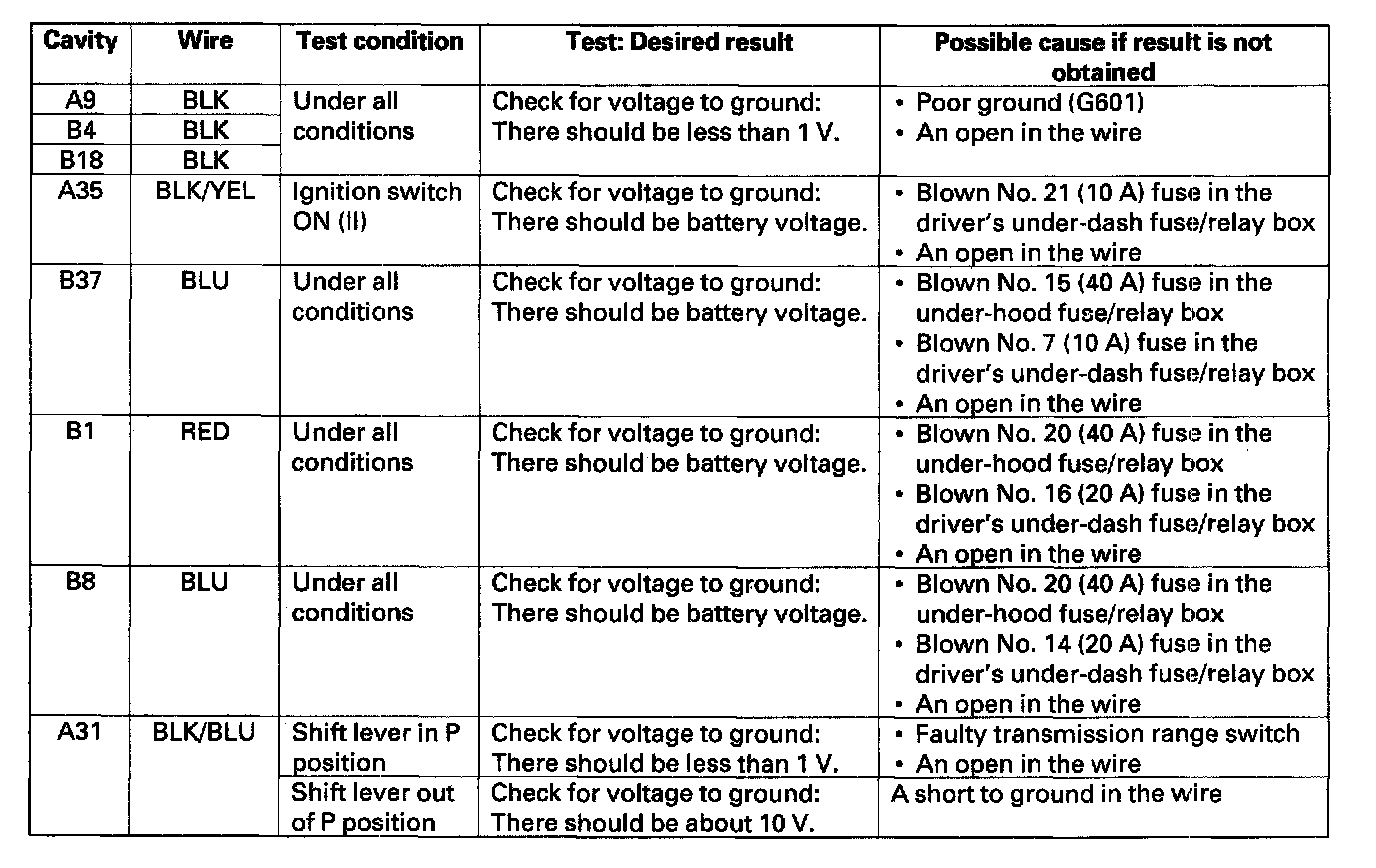 Home >> Acura >> 2005 >> RL V6-3.5L >> Repair and Diagnosis >> Accessories and Optional Equipment >> Memory Positioning Systems >> Testing and Inspection >> Power Seat Control Unit Input Test