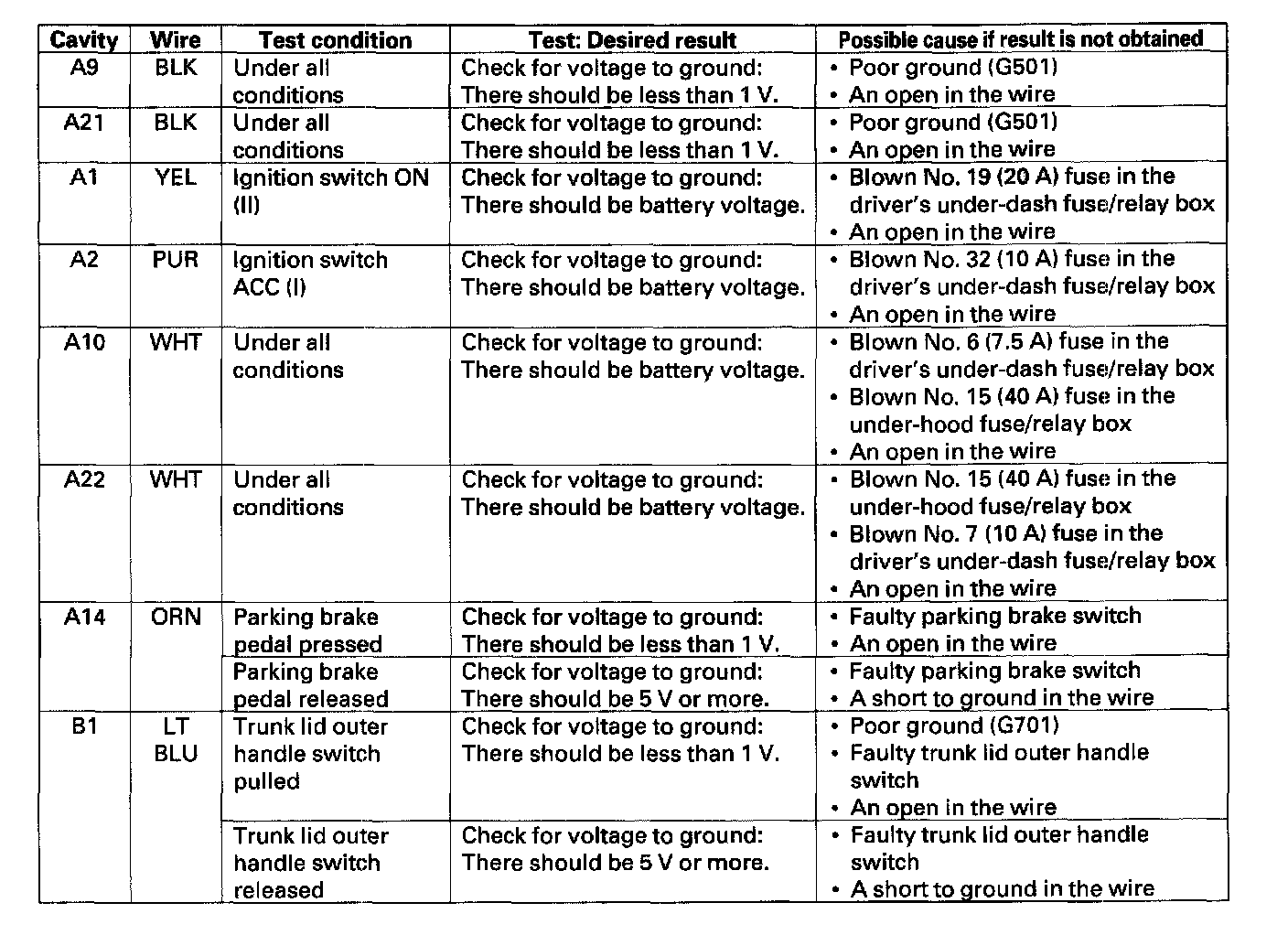 Home >> Acura >> 2005 >> RL V6-3.5L >> Repair and Diagnosis >> Body and Frame >> Locks >> Keyless Entry >> Testing and Inspection >> Component Tests and General Diagnostics >> Control Unit Input Test