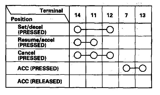 3. Check for continuity between the terminals in each switch position according to the table.