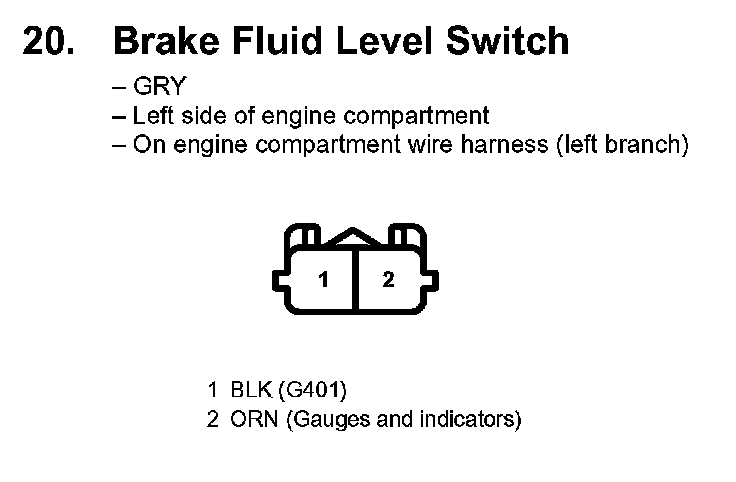 20. Brake Fluid Level Switch: