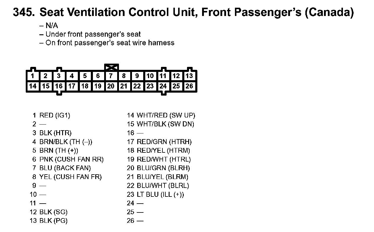 345. Seat Ventilation Control Unit, Front Passenger's (Canada):