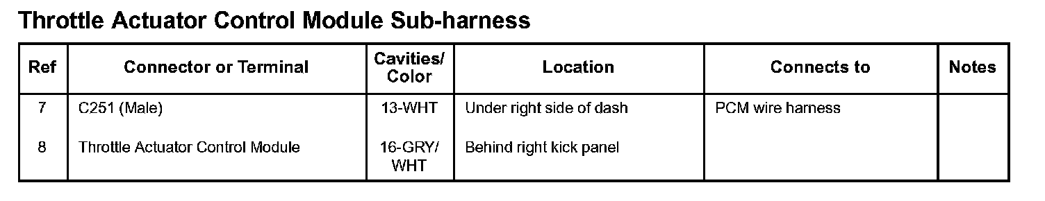 Throttle Actuator Control Module Sub-harness: