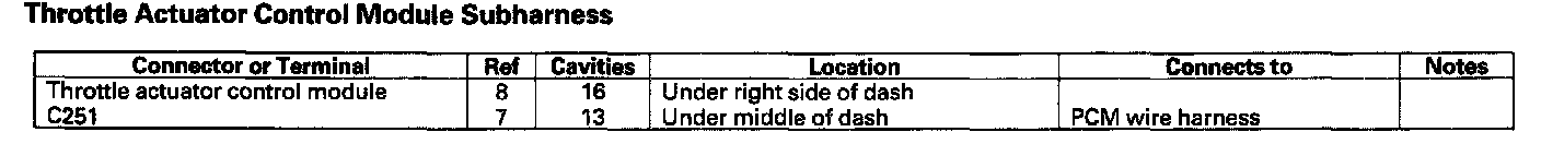 Throttle Actuator Control Module Subharness: