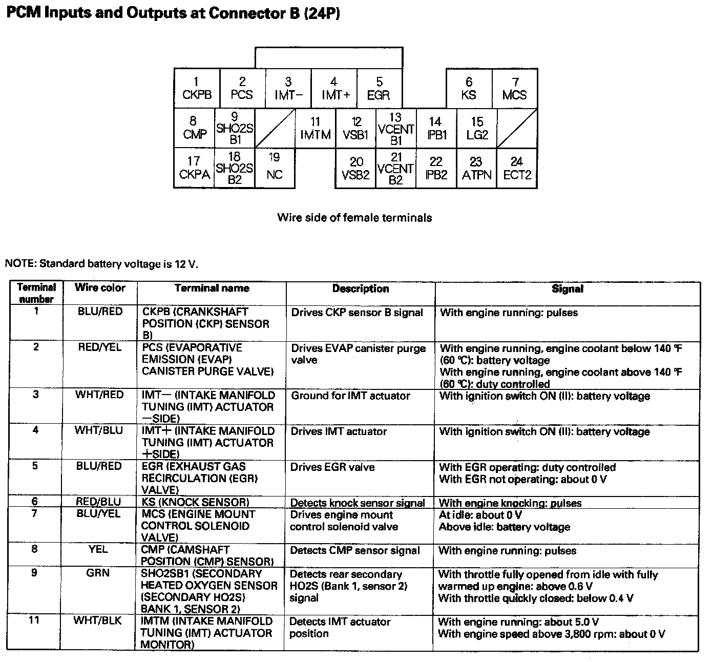 PCM Inputs And Outputs At Connector B (24P) Part 1: