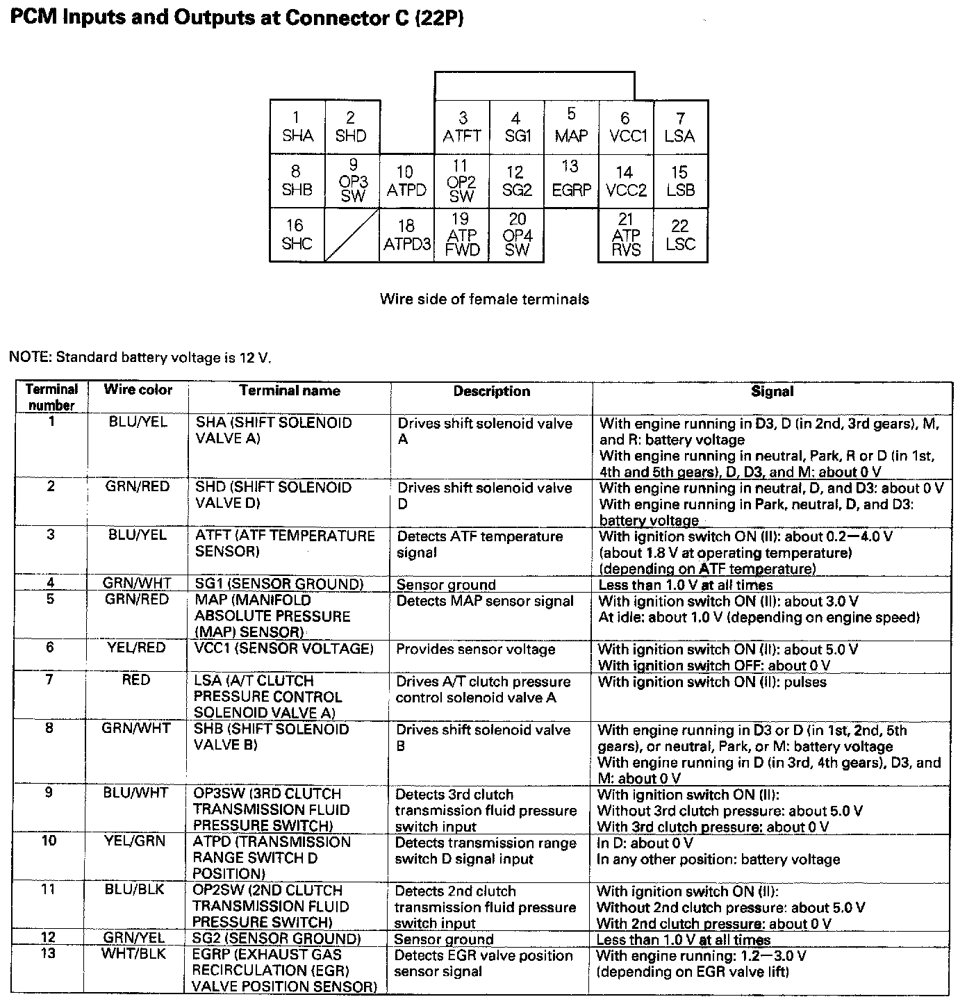 PCM Inputs And Outputs At Connector C (22P) Part 2: