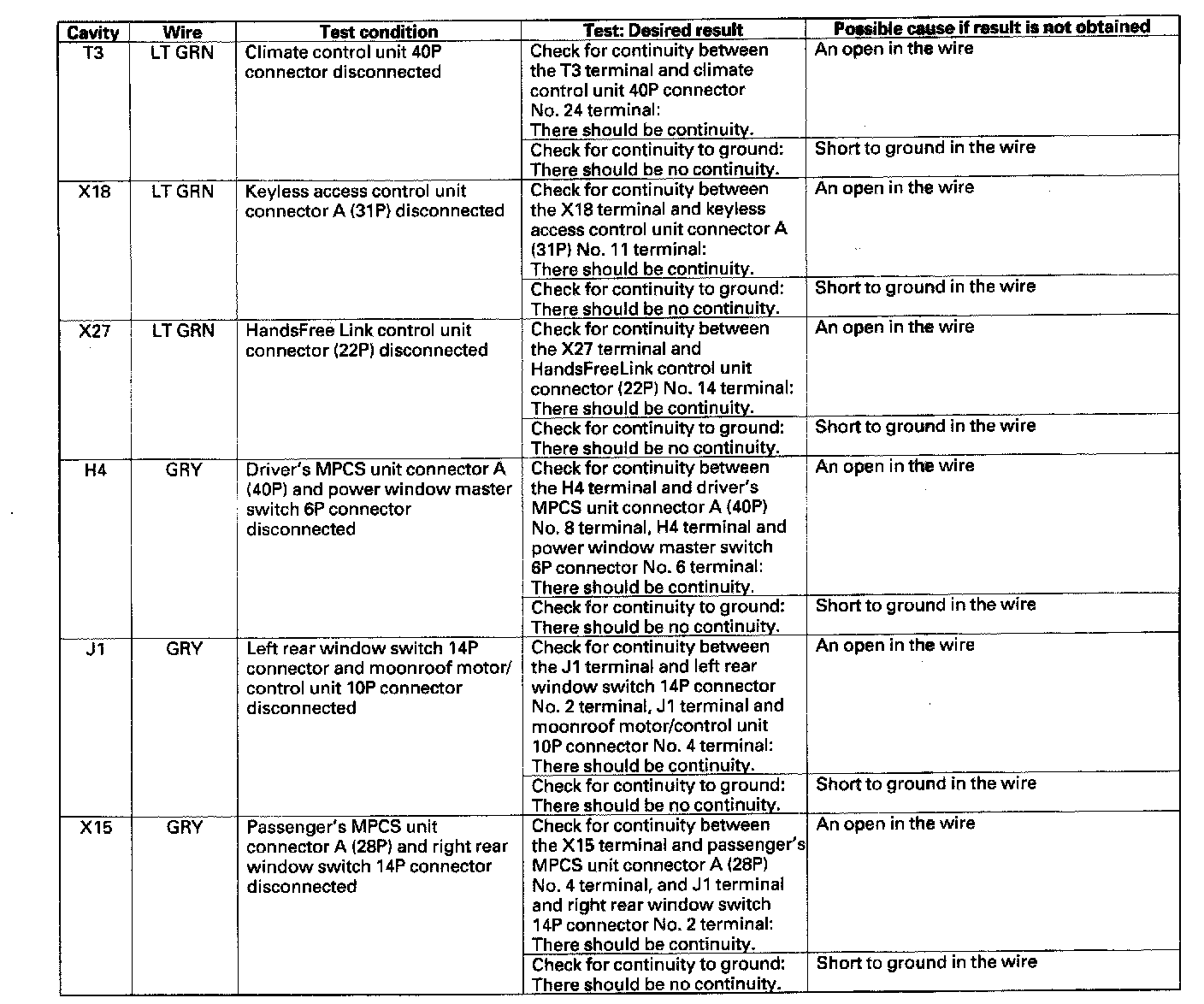 6. Reconnect the connectors to the MICU, and make these input tests at the connectors.