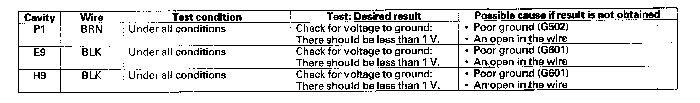 5. With the connectors still disconnected, make these input tests at the connectors.