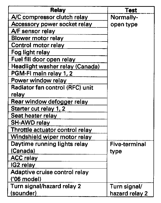 Home >> Acura >> 2005 >> RL V6-3.5L >> Repair and Diagnosis >> Powertrain Management >> Computers and Control Systems >> Main Relay (Computer/Fuel System) >> Testing and Inspection