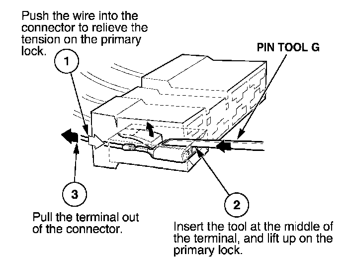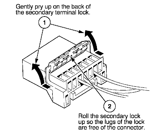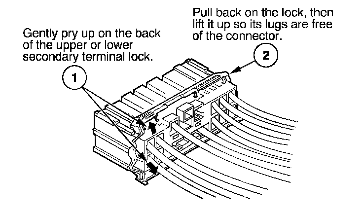 - If it has a secondary terminal lock, go to Connectors With a Secondary Lock. A secondary lock, found on most connectors on some models, is an additional locking device on the connector housing as a backup for the primary lock on the terminal.