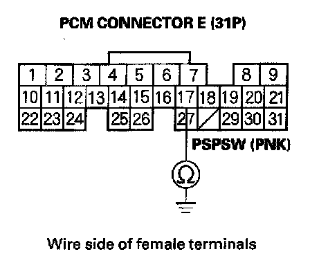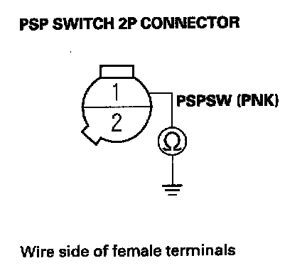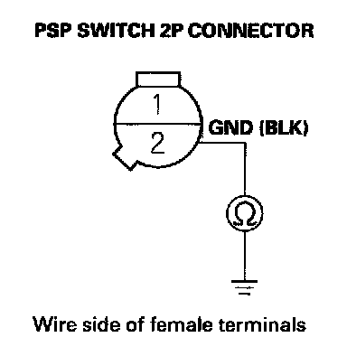 11. Check for continuity between PSP switch 2P connector terminal No. 1 and body ground.