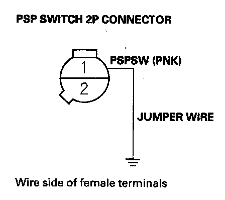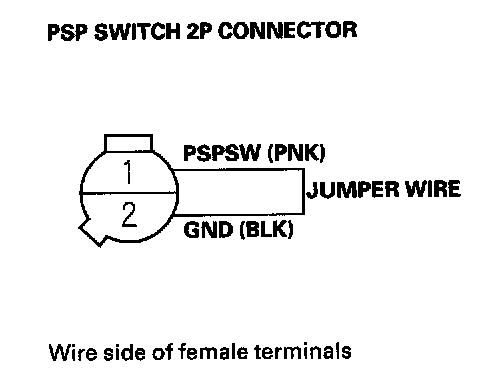 17. Remove the jumper wire from the PSP switch 2P connector.