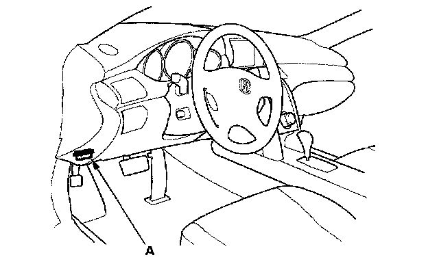 2. Connect the HDS or the Honda interface module (HIM) to the DLC (A) located under the left end of the dash.