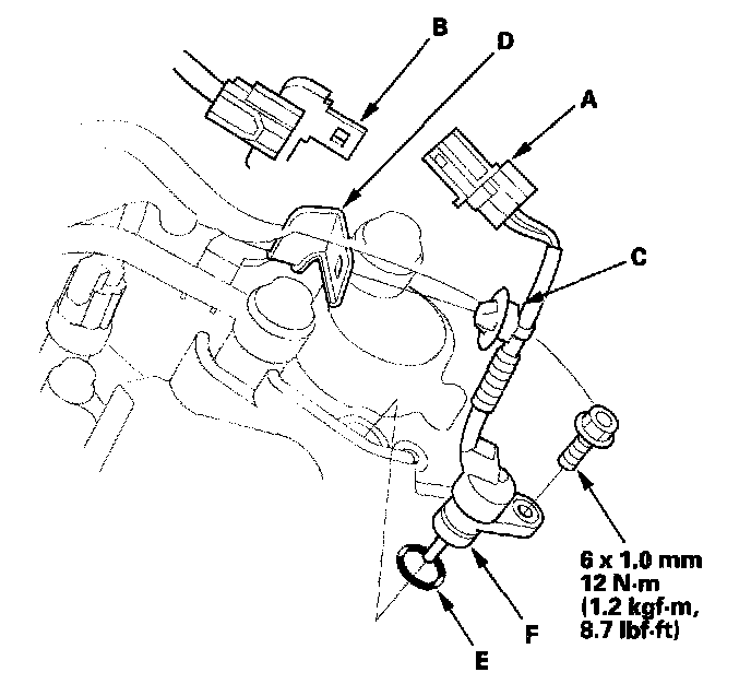 5. Install a new O-ring (E) on the new ATF temperature sensor (F).
