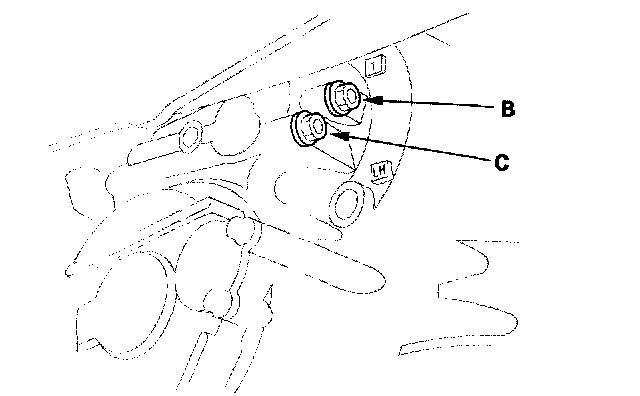 15. Shift to 1st gear, and measure the 1st clutch pressure at the 1st clutch pressure inspection port (B) and the 1st-hold clutch pressure at the 1st-hold clutch pressure inspection port (C) while holding the engine speed at 2,000 rpm.